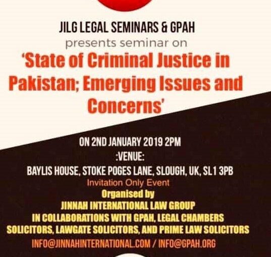Global Peace And Harmony ( GPAH), in collaboration with Jinnah International Law Group( GILG) have arranged a 5-day seminar. The conference, held on 2nd January, has acclaimed immense success! The multi-provincial Pakistani participants, coming from humble backgrounds and remote areas of Pindi Bhattian and Gujranwala were mixed, and represented Excellent lawyers and legists who were still unknown, even if they are well established in the High and Supreme Courts. The Objective was: First : that they are initiated into valuable modern techniques of imparting speedy justice. Second, to introduce a corruption ridden society, including the bureaucrats, police, land-mafia, and welfare organisations, thus giving relief to the Politically Injustice Dominated Public, who have NO Angel to defend them, but our own Illuminated Intellectuals, who are still unknown, by inculcating Good Values and Good-Will! They along with the public were delighted. All their UK expenses were borne by the London Organisations; as well as sponsoring and actualising their Visa and Ministerial Requirements, in both countries. This first Initiation will encourage their colleagues, to learn from well-established world systems and to apply that in Pakistan and also teaching their friends and associates that justice should be done and be seen done. Further exchange visits are under preparation.
